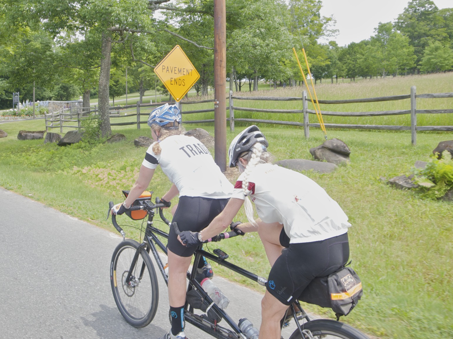 Captain Todd and stoker Patria met for the first time Friday night in a motel parking lot. John had met Rebecca a while before at the cafe, but the first time they actually rode together was Friday afternoon! Dena met Rebecca and Todd for first time this weekend. Dena and I had the advantage of being long-time friends, although it could be a disadvantage, since we'd run out of things to talk about years ago, and had thoroughly exhausted any potential new topics of conversation doing the Green Mountain Double last weekend. Our fellow tandem captains and stokers, on the other hand, had plenty to talk about as they got to know each other throughout the day!